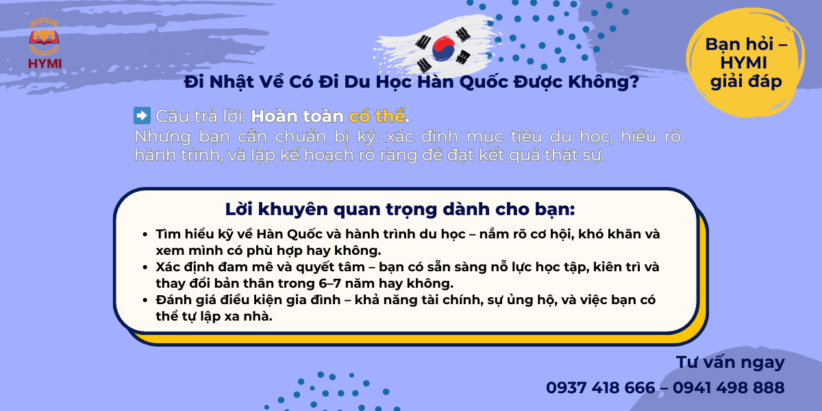 [Bạn hỏi – HYMI giải đáp] Đi Nhật về có đi du học Hàn Quốc được hay không?