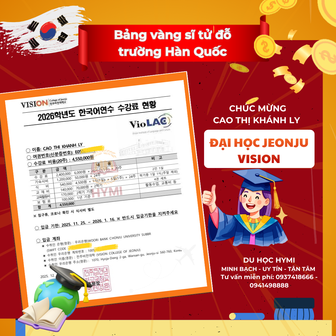 Nếu bạn đang ấp ủ kế hoạch du học Hàn Quốc kỳ 2026, HYMI sẵn sàng đồng hành và tư vấn lộ trình phù hợp với năng lực, điều kiện và mục tiêu cá nhân.