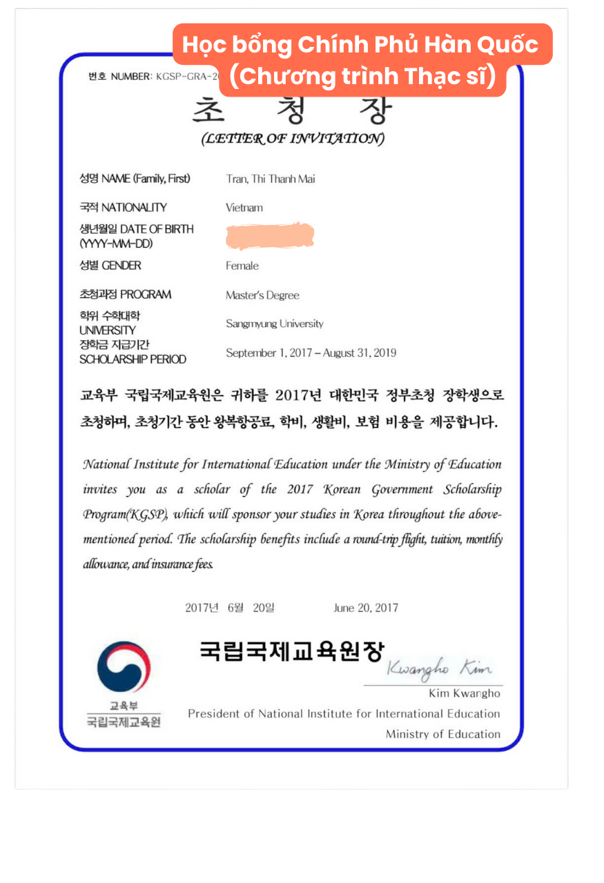 Điểm đặc biệt ở cô giáo Thanh Mai chính là khả năng kết nối và định hướng học viên với đa dạng chương trình học bổng. Từ học bổng Chính phủ Hàn Quốc danh giá (GKS/KGSP), học bổng doanh nghiệp, học bổng tập đoàn lớn cho đến những suất học bổng từ các trường đại học uy tín, tất cả đều được cô phân tích cụ thể về yêu cầu, lợi thế và chiến lược ứng tuyển. Chính nhờ sự am hiểu này, nhiều bạn học viên đã nắm bắt được hướng đi phù hợp, tránh tình trạng mơ hồ hoặc bỏ lỡ cơ hội chỉ vì thiếu thông tin.