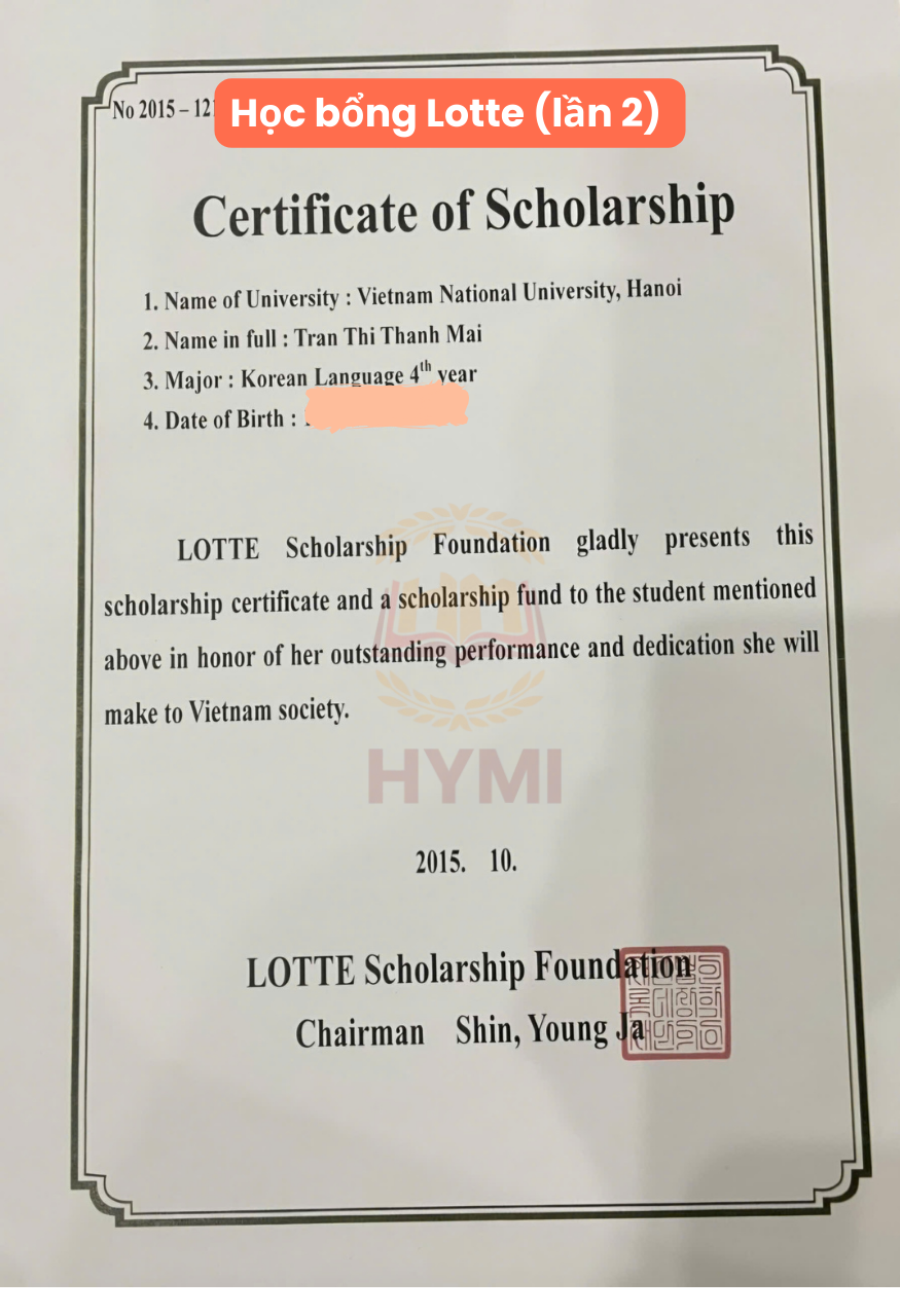 Cùng điểm qua một số học bổng mà cô Mai đã nhận được nhé: