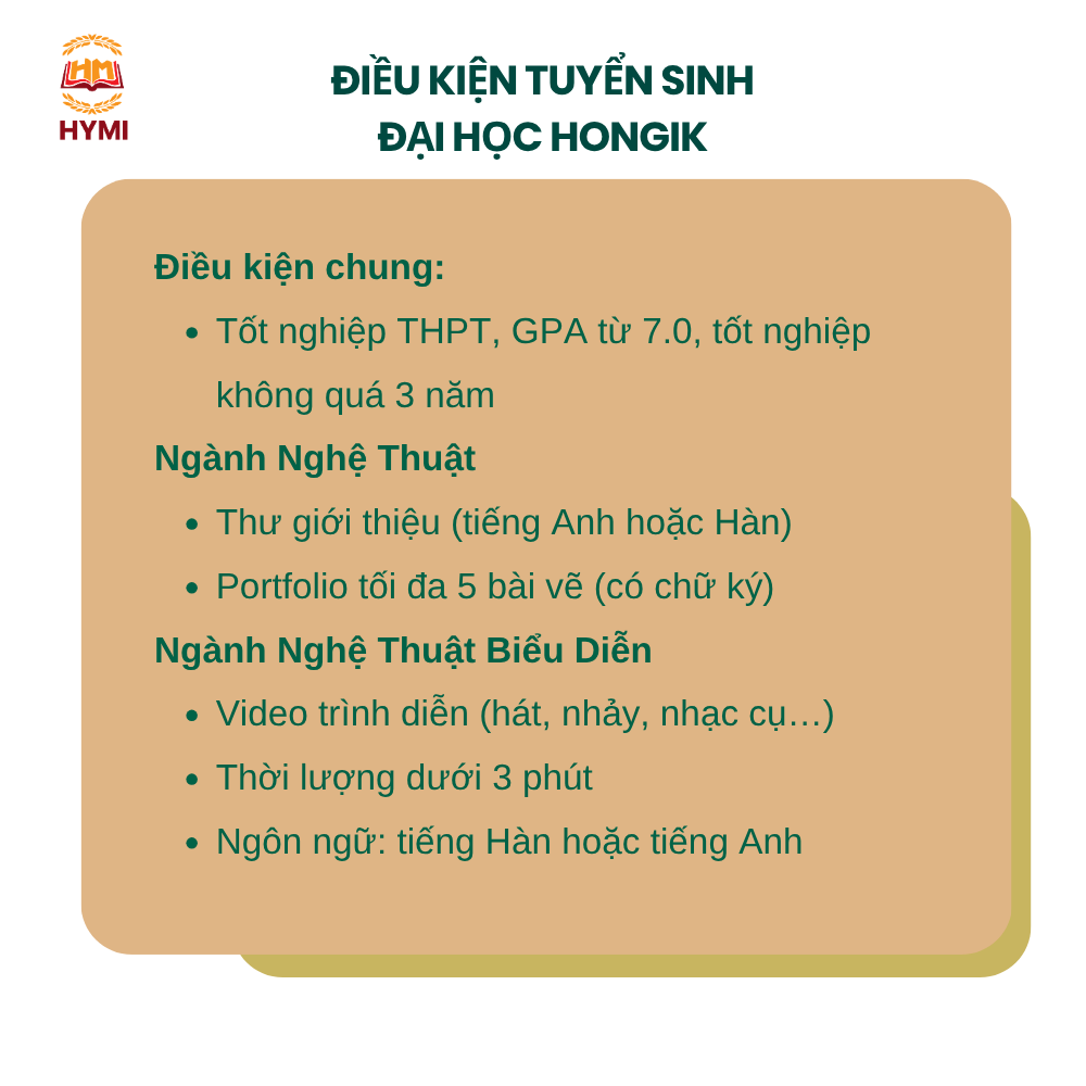 Điều kiện nhập học Đại học Hongik