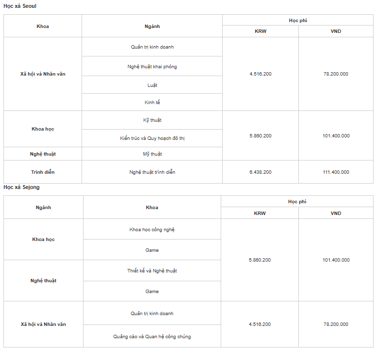 - 5 Học phí và học bổng tại Đại học Hongik