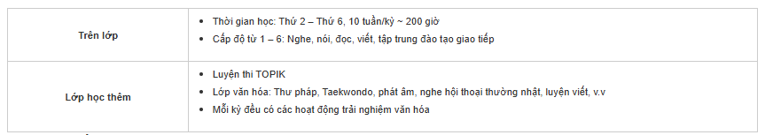 • Không yêu cầu TOPIK.