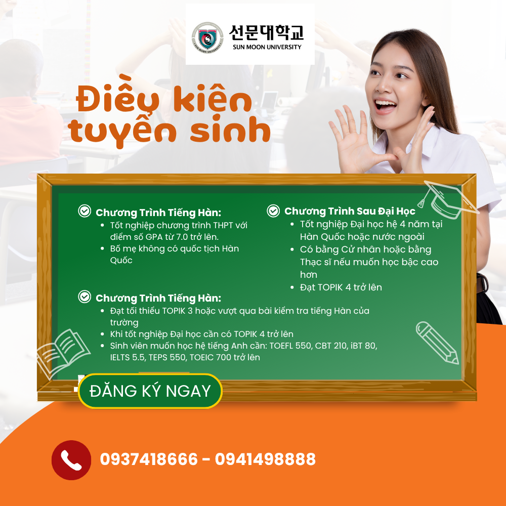 Du học không chỉ là chuyến đi đến một đất nước mới, mà là hành trình trưởng thành, là cơ hội để bạn tự viết nên câu chuyện của chính mình. Và tại Đại học Sunmoon, nơi tri thức giao hòa cùng cơ hội, mỗi sinh viên đều có thể biến khát vọng thành thành tựu.