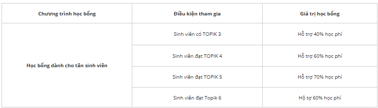 Tùy theo chính sách từng trường, sinh viên có thể nhận học bổng dựa trên điểm GPA, năng lực tiếng Hàn hoặc thành tích học tập.