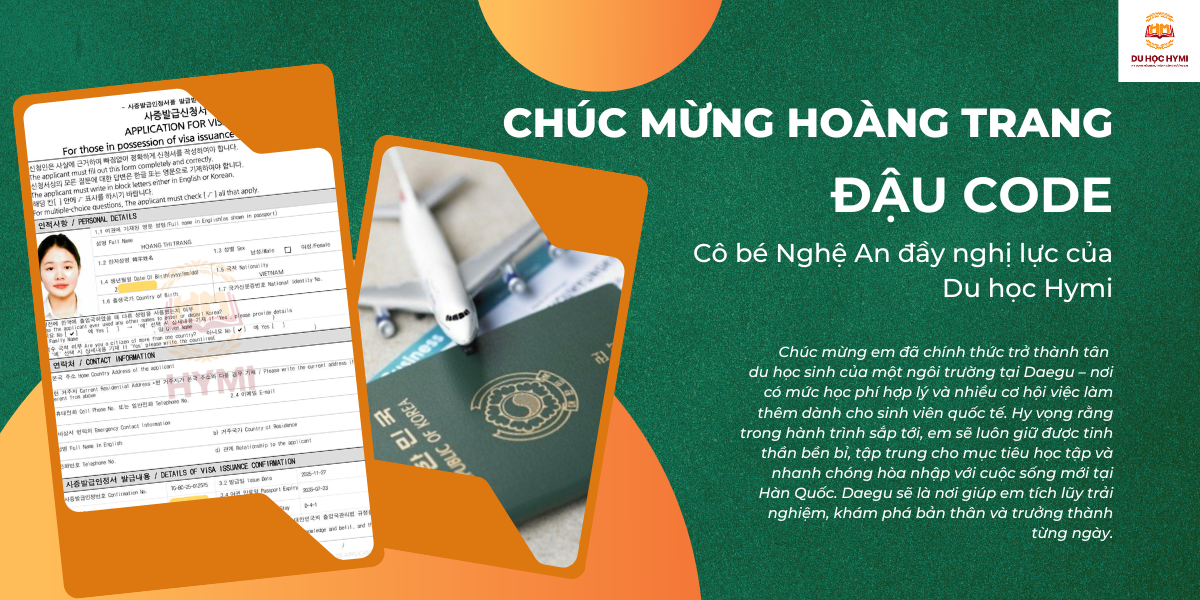 Chúc mừng học viên Nghệ An của HYMI xuất sắc đậu code trường khu vực Daegu – mở ra hành trình du học đầy triển vọng