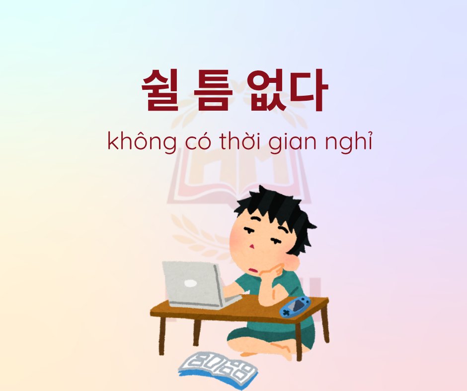Ngoài ra, khi xem phim, đọc sách hay theo dõi tin tức về cuộc sống ở Hàn Quốc, bạn sẽ thấy chủ đề bận rộn xuất hiện rất thường xuyên. Người dân Hàn Quốc nổi tiếng với tinh thần làm việc chăm chỉ và nhịp sống nhanh. Hiểu được các từ vựng này sẽ giúp bạn cảm nhận sâu sắc hơn về áp lực công việc, học tập mà họ đang phải đối mặt, từ đó có cái nhìn toàn diện hơn về xã hội và văn hóa của họ.