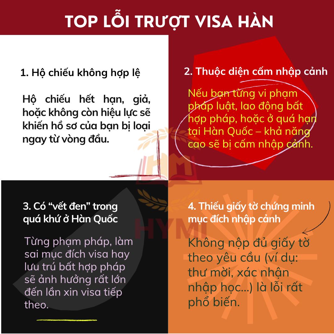 Mỗi năm, hàng trăm hồ sơ bị từ chối chỉ vì những lỗi không đáng có – sai thông tin, thiếu giấy tờ, hay đơn giản là chưa hiểu rõ quy trình. Hãy cùng HYMI “giải mã” những lỗi phổ biến nhất khiến hồ sơ visa du học Hàn Quốc bị loại, để bạn chuẩn bị thật kỹ và tăng tỉ lệ đậu visa ngay từ lần đầu tiên.
