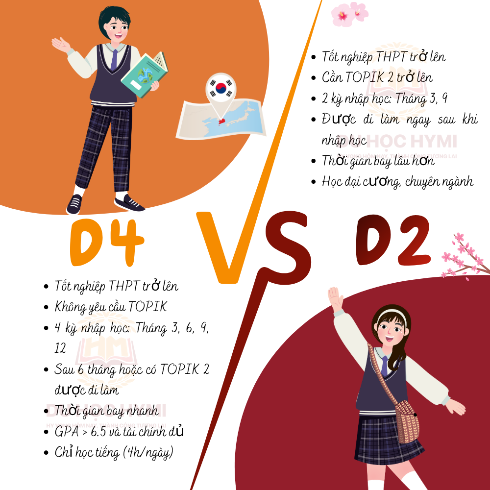 Vậy nên, trước khi “chốt đơn” cho hành trình du học của mình, hãy cùng Du học HYMI tìm hiểu rõ sự khác nhau giữa hai hệ du học phổ biến nhất tại Hàn Quốc – D4-1 và D2 – để chọn hướng đi phù hợp nhất nhé!